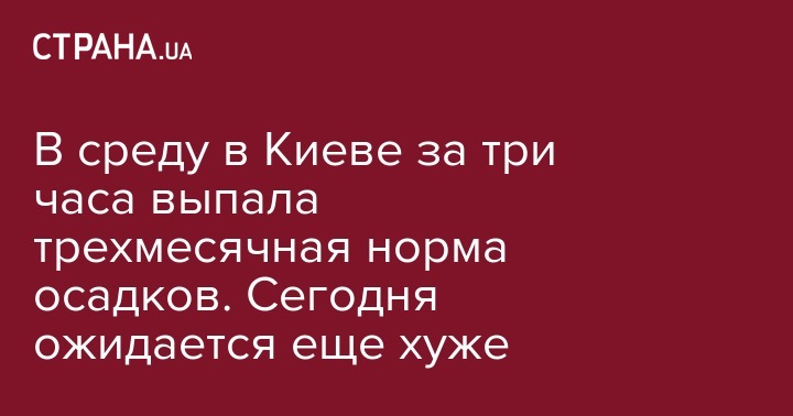 В среду в Киеве за три часа выпала трехмесячная норма осадков. Сегодня ожидается еще хуже