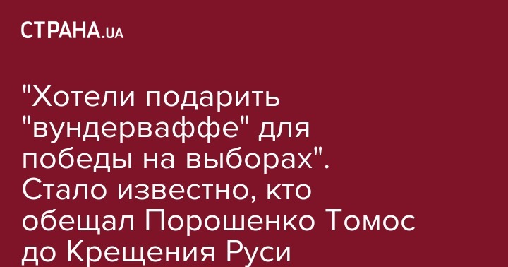 По его словам, ложным обещанием Томоса до дня Крещения Руси Порошенко обязан группе людей во главе с заместителем главы АП Ростиславом Павленко, которые решили подарить президенту "вундерваффе" (чудо-оружие) для победы на выборах: