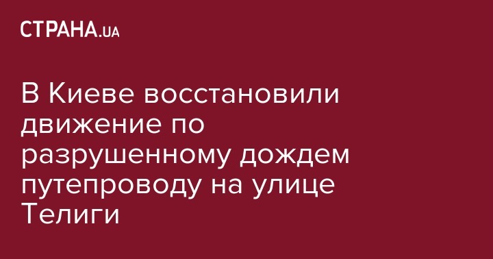 В Киеве восстановили движение по разрушенному дождем путепроводу на улице Телиги