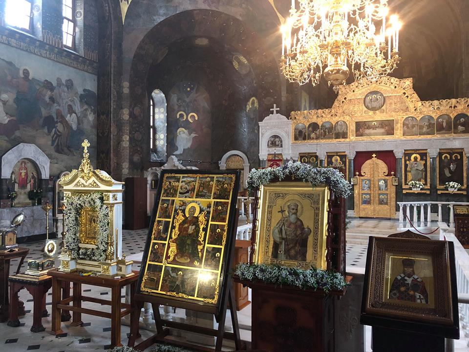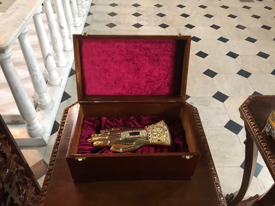 • мощи (правая рука) святого Георгия Победоносца, которые всегда находятся на Афоне.