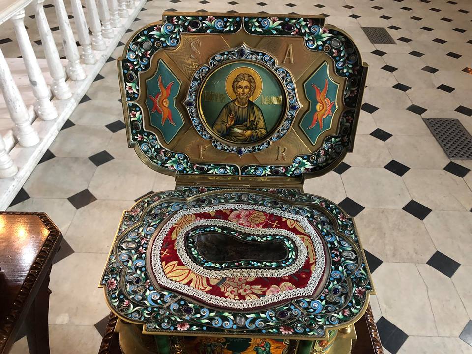 • икона Андрея Первозванного из монастыря Патр в Греции с частицей его мощей и частицей креста, на котором святого распяли.
