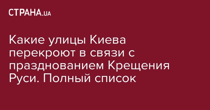 Какие улицы Киева перекроют в связи с празднованием Крещения Руси. Полный список