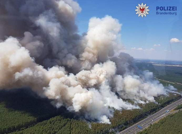 Около населенного пункта Фихтенвальде, что под Потсдамом, всего в паре десятков километров от Берлина, пожар охватил сосновый лес. Площадь возгорания составила около 90 гектаров.
