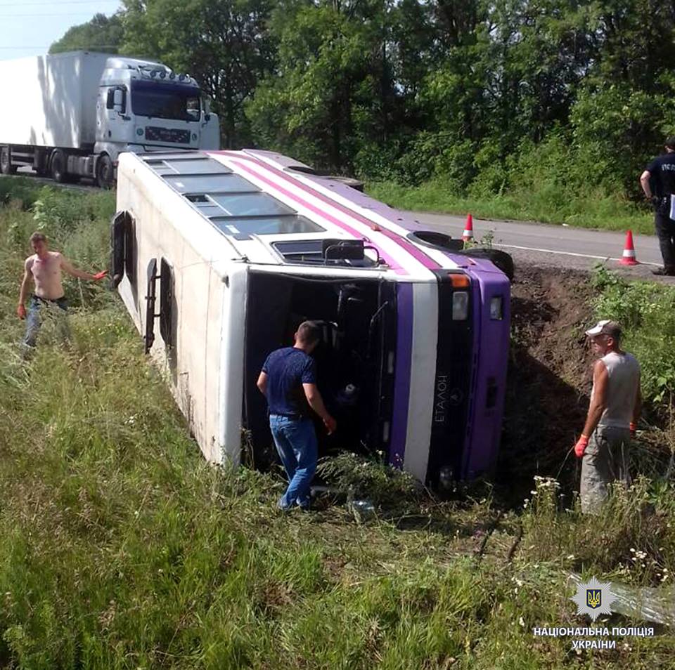Под Харьковом перевернулся автобус с двумя десятками пасажиров