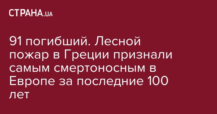 В Греции, число погибших от масштабного пожара, который бушевал в прибрежных районах к востоку от Афин, выросло до 91 человека.