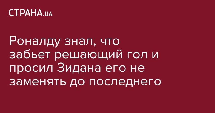 Роналду знал, что забьет решающий гол и просил Зидана его не заменять до последнего