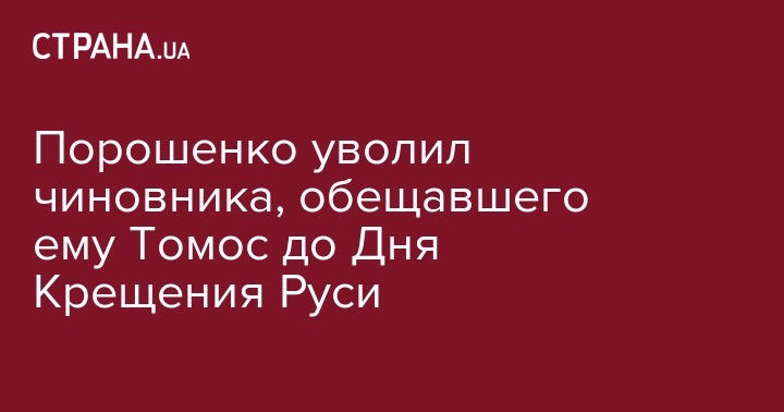 Порошенко уволил чиновника, обещавшего ему Томос до Дня Крещения Руси