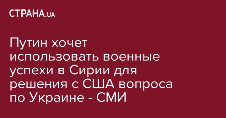 Президент России Владимир Путин планирует использовать военные успехи в Сирии для заключения соглашения с США по Украине. Об этом пишет Аljazeera.