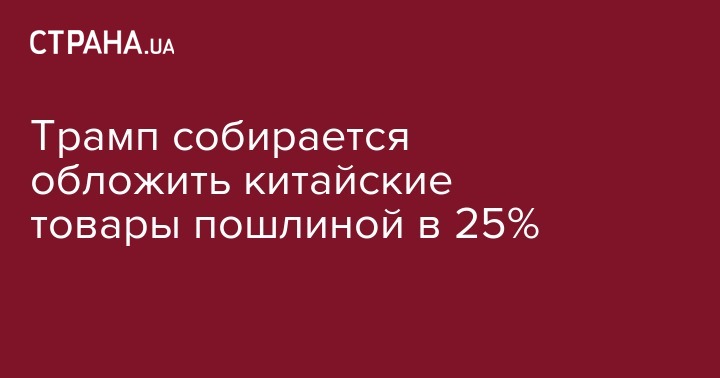 Администрация США предложит наложить на импортируемые в страну китайские товары пошлины в 25%. Об этом пишет Reuters, ссылаясь на свои источники.