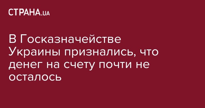 В Госказначействе Украины признались, что денег на счету почти не осталось