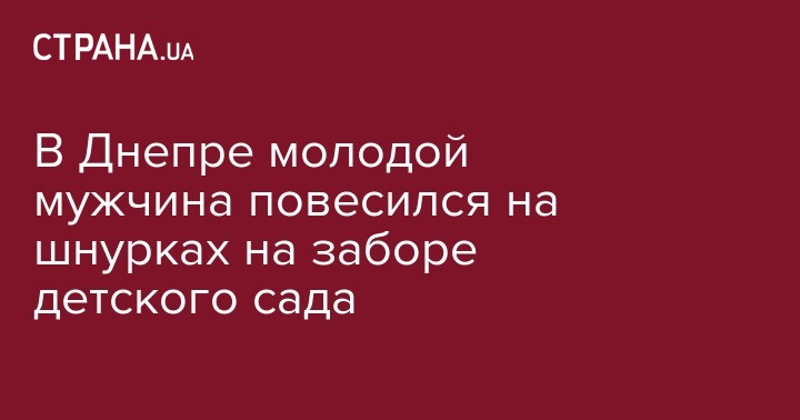 В Днепре молодой мужчина совершил суицид, повесившись на шнурках от кроссовок на заборе детского сада №72, который расположен на улице 152-дивизии. Тело погибшего было обнаружено сотрудницей детского учреждения рано утром 1 августа. Об этом сообщает Информатор.