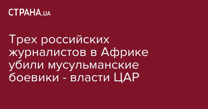 "Трое россиян с журналистскими удостоверениями были убиты 30 июля примерно в 19:24 по местному времени (21:24 по киевскому времени - Прим. Ред.) в 24 км от населенного пункта Сибю на шоссе, ведущем в Декоа, - указало радио со ссылкой на власти Сибю. - Их тела были обнаружены утром во вторник сотрудниками Миссии ООН по стабилизации в ЦАР (МИНЮСКА) в нескольких километрах к северу от Сибю. Власти считают, что убийство могло быть делом рук повстанцев "Селека". Тела убитых были доставлены 31 июля сотрудниками МИНЮСКА в Банги".