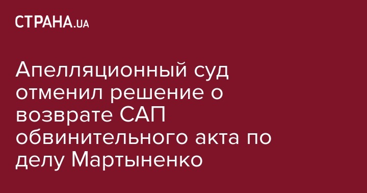 Апелляционный суд отменил решение о возврате САП обвинительного акта по делу Мартыненко