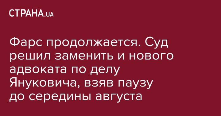 Фарс продолжается. Суд решил заменить и нового адвоката по делу Януковича, взяв паузу до середины августа