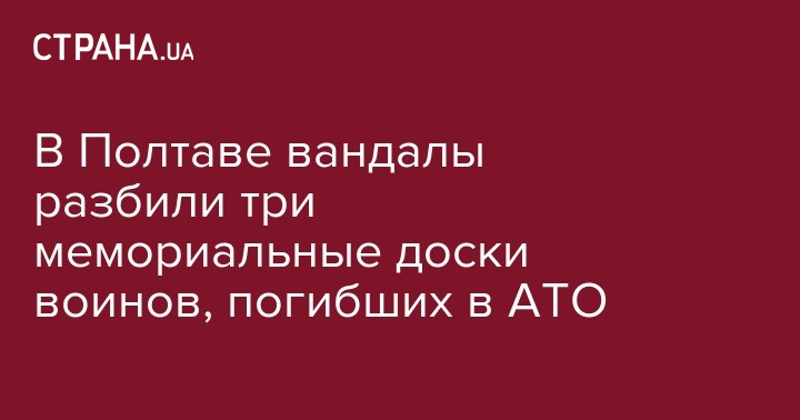 В Полтаве сегодня ночью и утром неизвестные сломали три мемориальные доски, увековечивающие память погибших участников АТО. Полиция пытается установить личности вандалов, которые совершили это уголовное преступление, сказано на сайте Нацполиции.