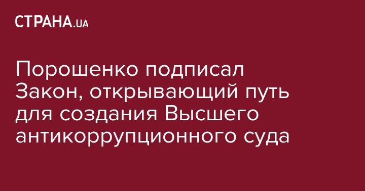 "Путь к созданию и функционированию Высшего антикоррупционного суда полностью открыт! Только что подписал Закон Украины "О внесении изменений в Закон Украины "О судоустройстве и статусе судей" в связи с принятием Закона Украины" О Высшем антикоррупционном суде".