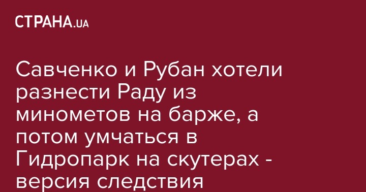 Он также отметил, что следствие рассматривало и возможность установки Рубаном и Савченко минометов на барже. По его словам, одной баржи хватило бы для установки четырех минометов. После всего этого они якобы собирались сбежать с помощью двух гидроскутеров в Гидропарк и спрятаться там "среди людей". На все это было бы потрачено максимум 15 минут.