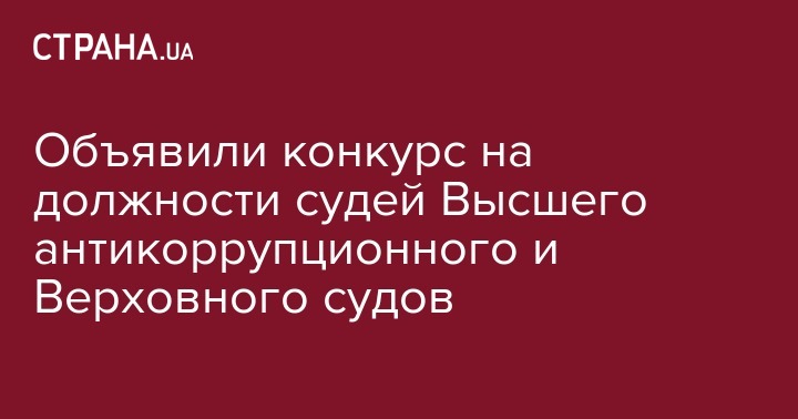 Высшая квалификационная комиссия судей Украины (ВККСУ) объявила конкурсы на замещение должностей судей Высшего антикоррупционного суда (ВАКС) и Верховного Суда.