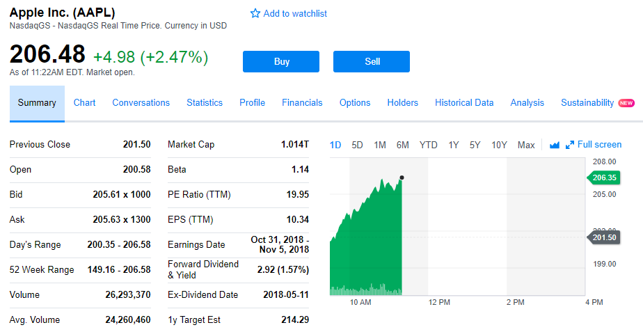 Сейчас финансовые сервисы Google и Yahoo! оценивают общую стоимость компании в 956 и 958 миллиардов долларов соответственно.