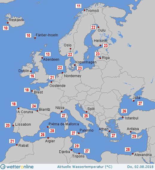 "Карта показывает где-то "супчик", ближе к Африке вода напоминает горячие закарпатские источники, а где-то, например, вблизи Ирландии и западного побережья Франции ... купаться в 16-18 градусах то холодновато," - написала она.