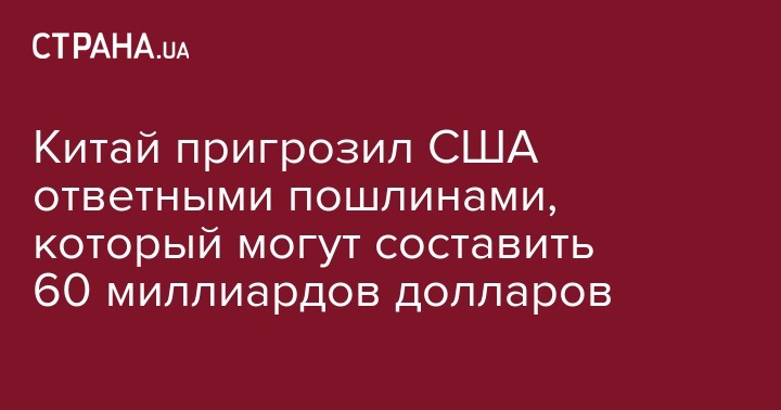 Власти Китая пригрозили увеличить таможенную пошлину на американские товары на 25%, общей суммой $60 млрд. На такую меру они намерены пойти если США обложат пошлинами китайские товары на $200 млрд.