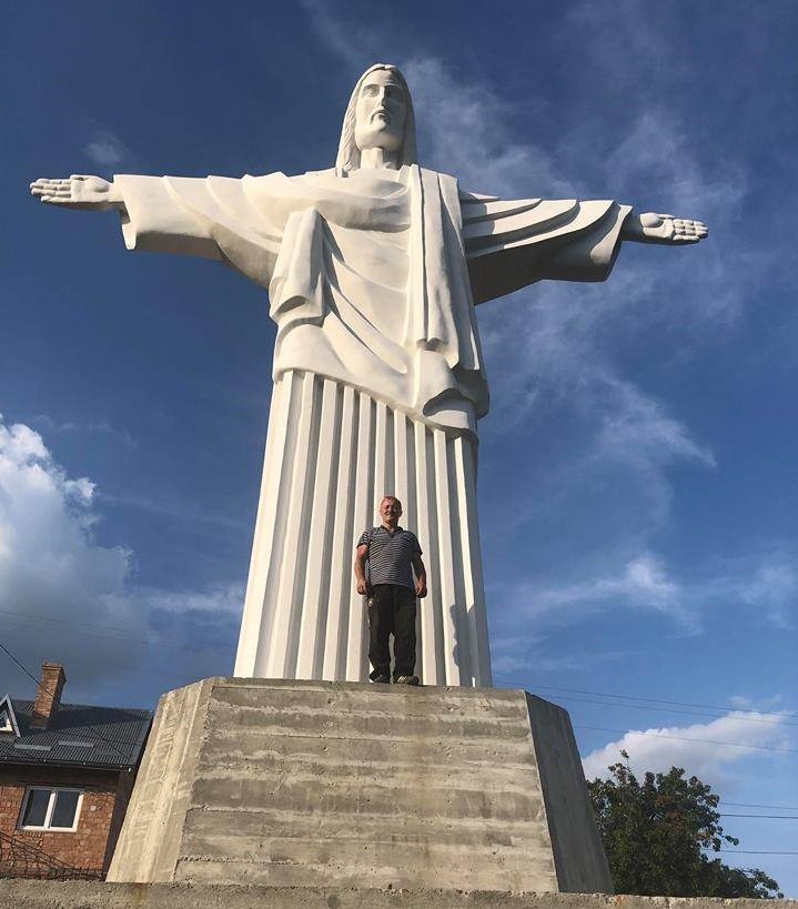 9-метровый бетонный Иисус стоит на 3-метровом постаменте на Гошевской горе, которая является самой высокой точкой города. Установили статую еще в октябре 2017 года. С тех пор ее украшали так, что она фактически стала уменьшенной копией почти 40-метрового Христа-Спасителя в бразильском Рио-де-Жанейро. По словам Игоря Кисак, торжественное открытие статуи состоится после проведенных работ по благоустройству окружающей территории и отделки постамента. Сколько стоило воплощение этой идеи, он не признается.
