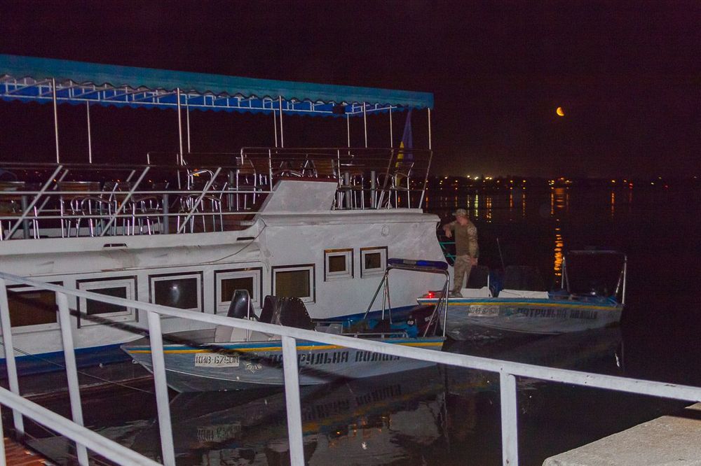 Пьяное ДТП на Днепре. Капитан катера протаранил плавучий ресторан. Фото