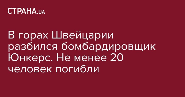 В Швейцарии, где в прошлом августе в авиакатастрофе разбился весь экипаж легкомоторного самолета Piper Warrior II HB PTL, новая авиакатастрофа. Здесь в результате крушения немецкого бомбардировщика времен Второй мировой войны погибло не менее 20 человек.