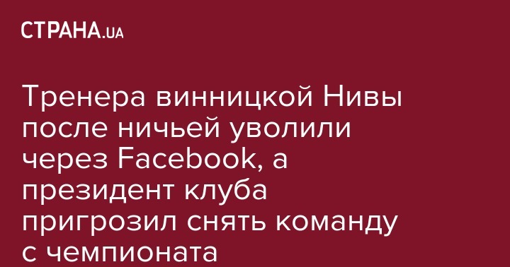 Во второй лиге украинского футбола произошел казусный случай. Президент винницкой Нивы Василий Вовк, после "сухой" ничьей с ровенским Вересом, публично сообщил наставнику команды Денису Колчину, что тот уволен. Причем средством коммуникации президент клуба выбрал социальную сеть Facebook.