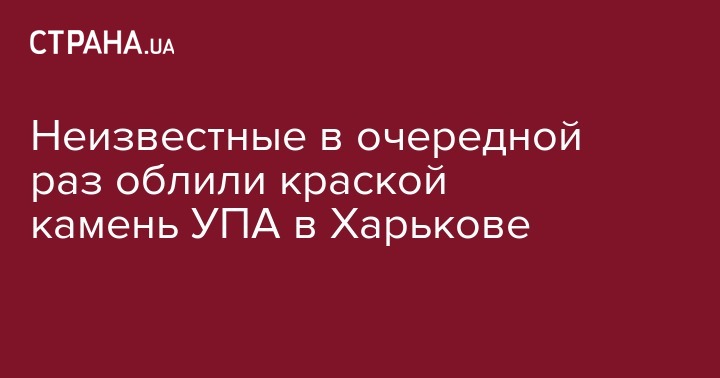 Неизвестные вновь облили красной краской памятный камень Украинской повстанческой армии в Молодежном парке в Харькове, сообщил глава организации "Свитанок" Вадим Поздняков