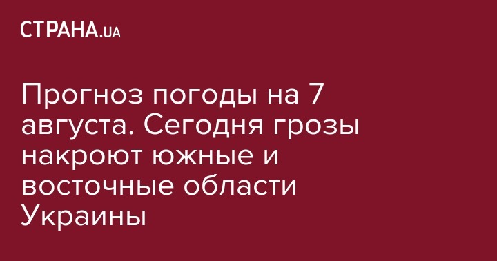 Во вторник, 7 августа, в Украине дожди с грозами накроют южные и восточные области. На остальной территории страны ожидается сухая, переменно облачная погода. Об этом сообщает Укргидрометцентр.