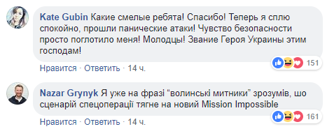 "Какие смелые ребята! Спасибо! Теперь я сплю спокойно, прошли панические атаки! Чувство безопасности просто поглотило меня! Молодцы! Звание Героя Украины этим господам!"