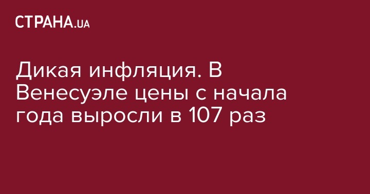 В Венесуэле цены с начала года выросли на рекордные 10664% или в 107 раз. Об этом сообщил в понедельник глава комитета по финансам Национальной ассамблеи Рафаэль Гусман, передает ТАСС.