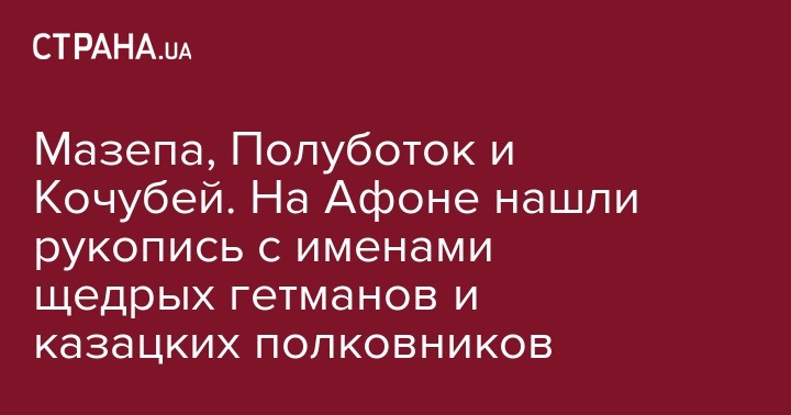Мазепа, Полуботок и Кочубей. На Афоне нашли рукопись с именами щедрых гетманов и казацких полковников