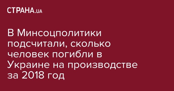 В Минсоцполитики подсчитали, сколько человек погибли в Украине на производстве за 2018 год