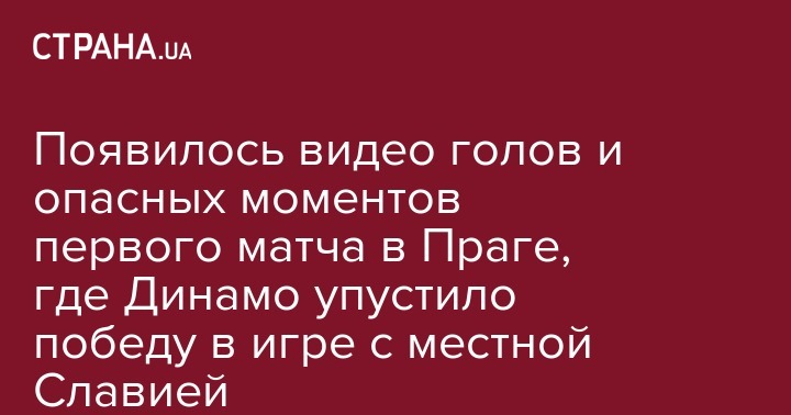 Появилось видео голов и опасных моментов первого матча в Праге, где Динамо упустило победу в игре с местной Славией