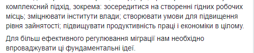 "Что касается снижения миграционных настроений, то мировой опыт, в том числе восточноевропейских стран, утверждает, что нужно применять комплексный подход, в частности: сосредоточиться на создании достойных рабочих мест; укреплять институты власти; создавать условия для повышения уровня занятости; повышать производительность труда и экономики в целом", - резюмировал он.