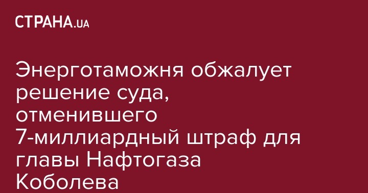 Напомним, глава НАК "Нафтогаз Украины" Андрей Коболев обжаловал в Подольский районный суд Киева два постановления Энергетической таможни ГФС о наложении на него персонального штрафа на 7 и 1,3 миллиарда гривен.