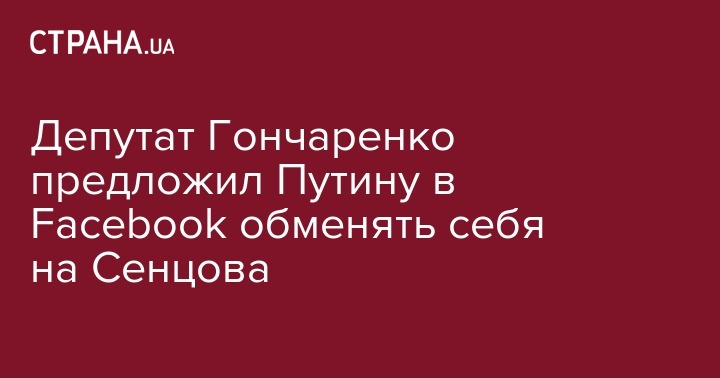 Народный депутат от Блока Петра Порошенко и член украинской делегации в Парламентской ассамблее Совета Европы Алексей Гончаренко написал письмо президенту России Владимиру Путину, в котором предложил обменять его на украинского режиссера Олега Сенцова, находящегося в российской колонии.