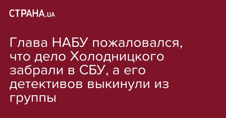 Глава НАБУ пожаловался, что дело Холодницкого забрали в СБУ, а его детективов выкинули из группы