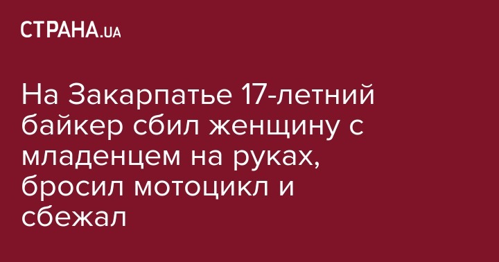 На Закарпатье 17-летний байкер сбил женщину с младенцем на руках, бросил мотоцикл и сбежал