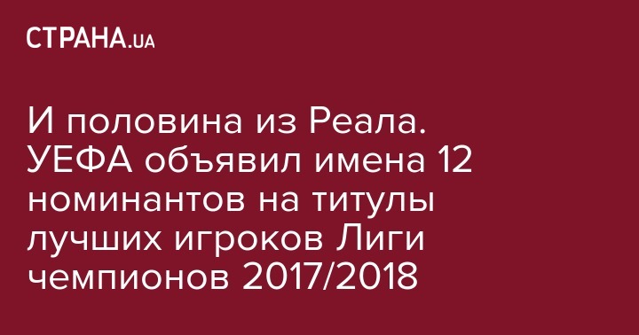 В УЕФА назвали имена 12 претендентов, из числа которых выберут лучшего кипера, защитника, полузащитника и нападающего минувшей Лиги чемпионов. Примечательно, что "королевский клуб" представляют сразу шесть игроков, плюс перешедший в "Ювентус" Криштиану Роналду, который в мае помог Мадриду выиграть третью Лигу чемпионов подряд.