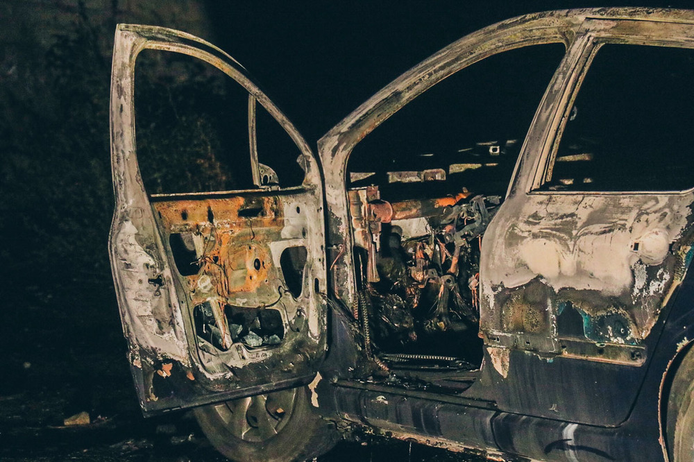 Автомобиль Peugeot 307 синего цвета, на котором уехали преступники, нашли сгоревшим на улице Нечуя Левицкого. Об этом сообщает Информатор с места события.