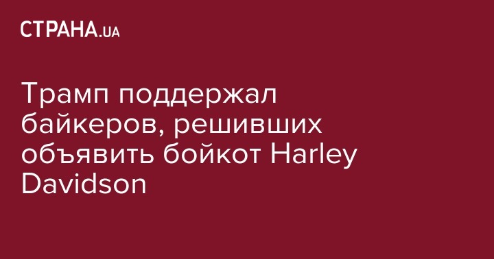 Президент США Дональд Трамп в воскресенье поддержал бойкот со стороны американских байкеров американской мотоциклетной компании Harley Davidson из-за вывода части производства за пределы США. Об этом он сообщил в Twitter.