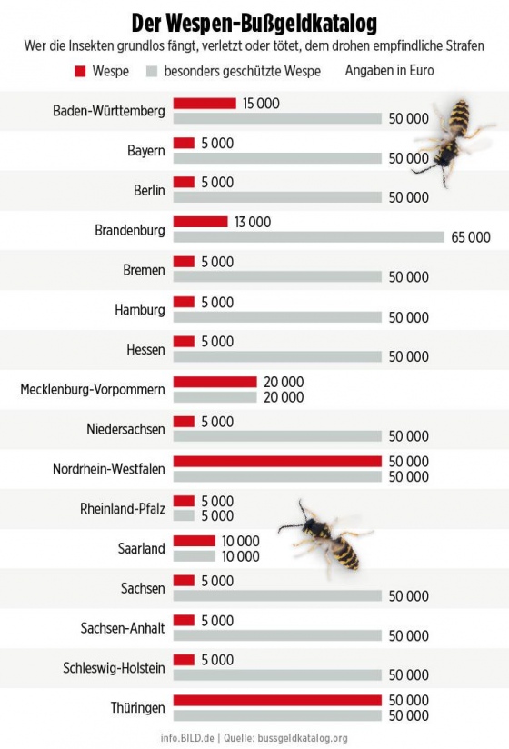 В ФРГ убийство осы влечет за собой в разных землях от 5 тыс. до 50 тыс. евро. Об этом пишет Bild.