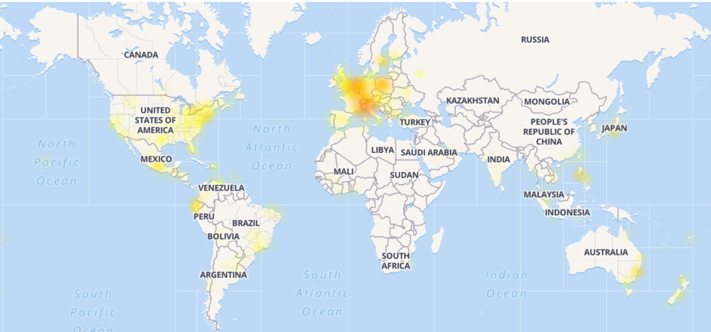 Наибольшие проблемы с работой приложения есть в США, Мексике, Аргентине, Италии, Франции, Великобритании, Бельгии, Польши, Беларуси, Турции, Молдове, России, Эстонии, Греции, Германии, Грузии, Нидерландах и Австрии.