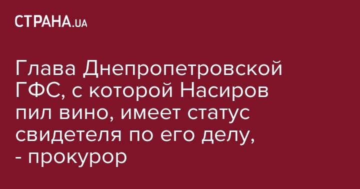 Глава Днепропетровской ГФС, с которой Насиров пил вино, имеет статус свидетеля по его делу, - прокурор