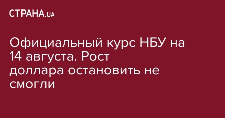 Национальный банк Украины (НБУ) установил официальный курс основных валют на 14 августа 2018 года. По сравнению с предыдущим банковским днем, 13 августа, регулятор ослабил курс национальной валюты до 27,34 гривен за доллар. Об этом свидетельствуют данные на сайте ведомства.