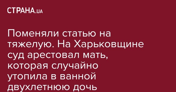 34-летняя жительница города Изюм на Харьковщине, по вине которой в ванной утонула ее двухлетняя дочь, взята судом под стражу. Об этом сообщает пресс-служба региональной Нацполиции