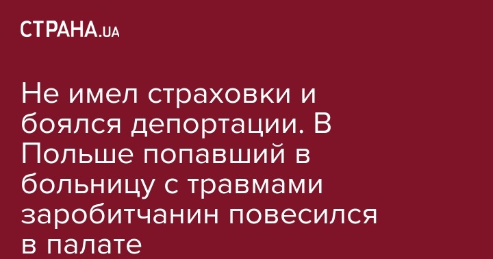 Трагедия произошла утром. Украинец повесился в палате для больных. В больнице он понял, что не имеет страховки, а следствием этого могут быть большие финансовые затраты на лечение и депортация на родину.